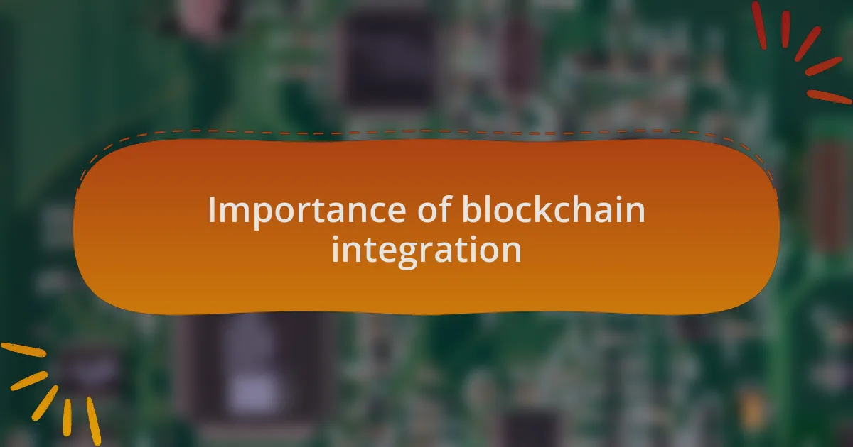 The integration of blockchain technology is increasingly important as it enhances operational efficiency across various sectors. I recall a project where we utilized blockchain to streamline transaction processes. The reduction in administrative overhead was not just notable; it felt like lifting a weight off our shoulders, allowing us to redirect resources toward innovation. Isn’t it fascinating how a tech like this can transform daily operations?